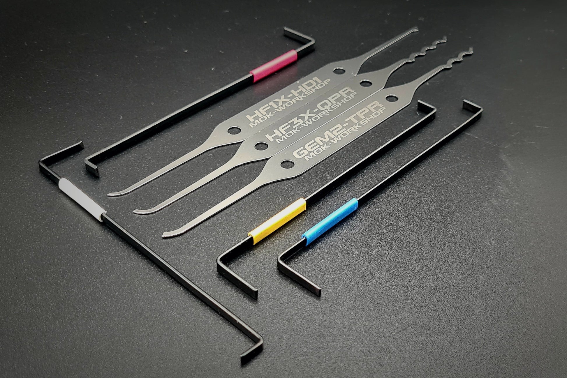 The Dual-Line Picks share the existing MOK-Workshop ecosystem. Theoretically, you can install your favorite profile in a standard grip. This will, of course, block one profile – and that's precisely why we now have smaller grips that are 3D-printed specifically for the Dual-Line. Feel free to check out the accessories!